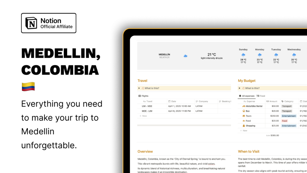Notion Travel Guide | Medellin, Colombia 🇨🇴