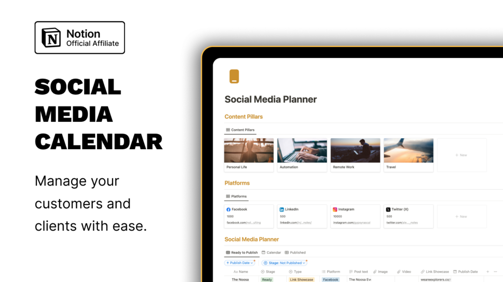 This template offers everything you need to schedule, plan, and manage your content effectively. From crafting engaging posts to tracking analytics, take back control.